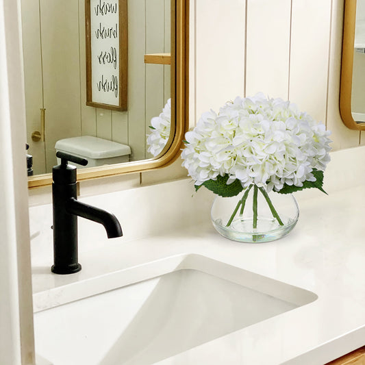 Artificial Hydrangea Arrangement in Glass Vase Fake Flowers